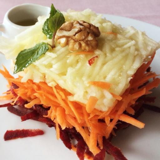 Салата "Санторини"- ябълка, морков,червено црекло | 250 г | 4.00 € / 7.82 лв. | Избери |