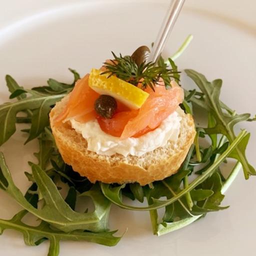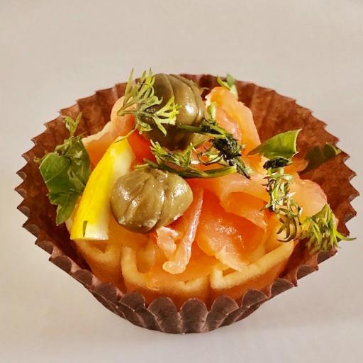 Коктейлна хапка с пушена сьомга, лимон и каперси |