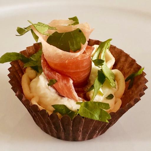 Коктейлна хапка „Ирис“ с прошуто и ананас |