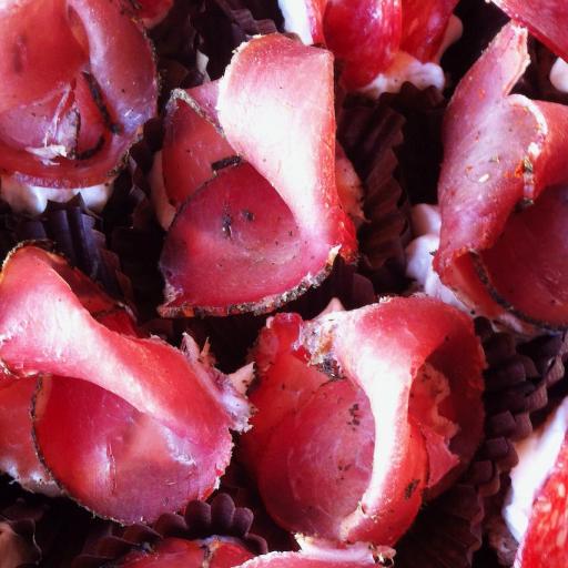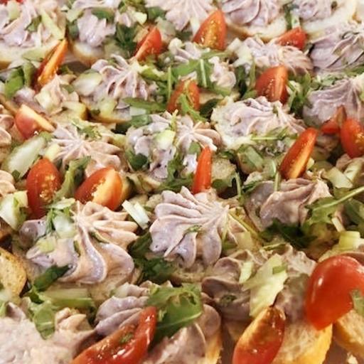 Коктейлна хапка с домашен пастет, червена чушка и маслина |