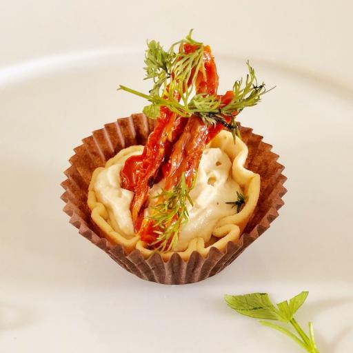 Коктейлна хапка "Ирис" с хомус и сушен домат |
