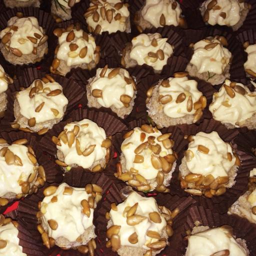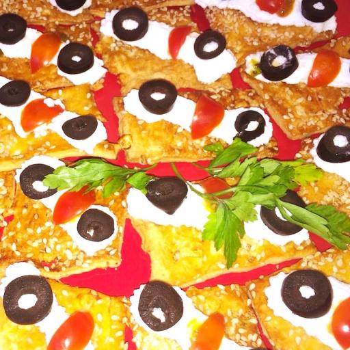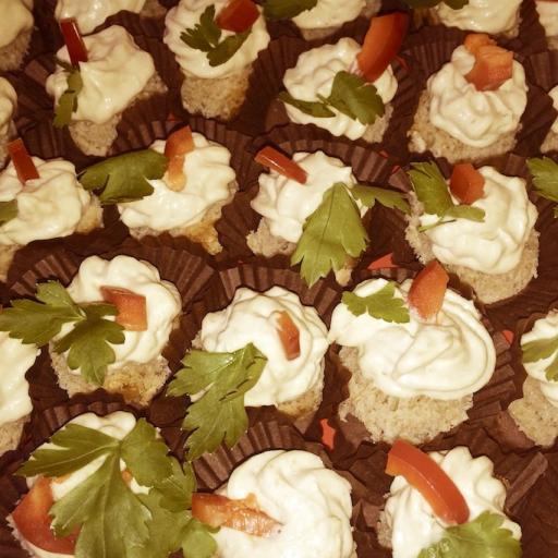 Коктейлна хапка с домашен пастет, червена чушка и маслина |