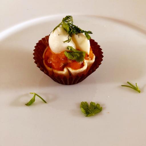 Тарталета с рибен мус , декорирани с черен хайвер |